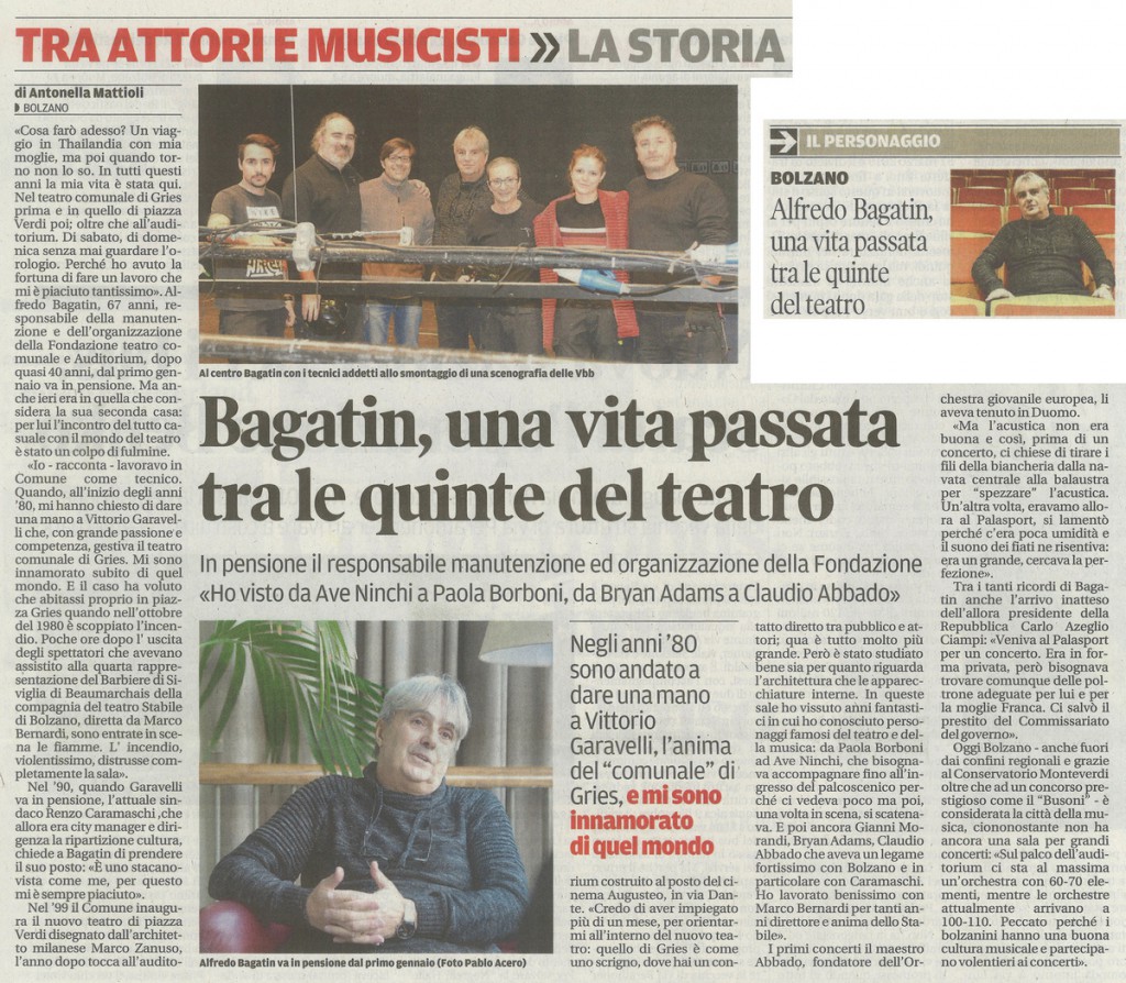 Alfredo Bagatin, una vita passata tra le quinte del teatro